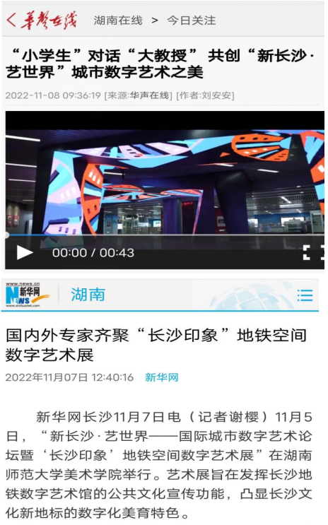 湖南新闻联播2022年11月7日报道allwincity万象城官方网站所举办的“长沙印象”地铁空间数字艺术展,在长沙地铁播放60余幅由中小学艺术作品的”长沙印象“绘画,被打造成充满童趣的光影大秀。
