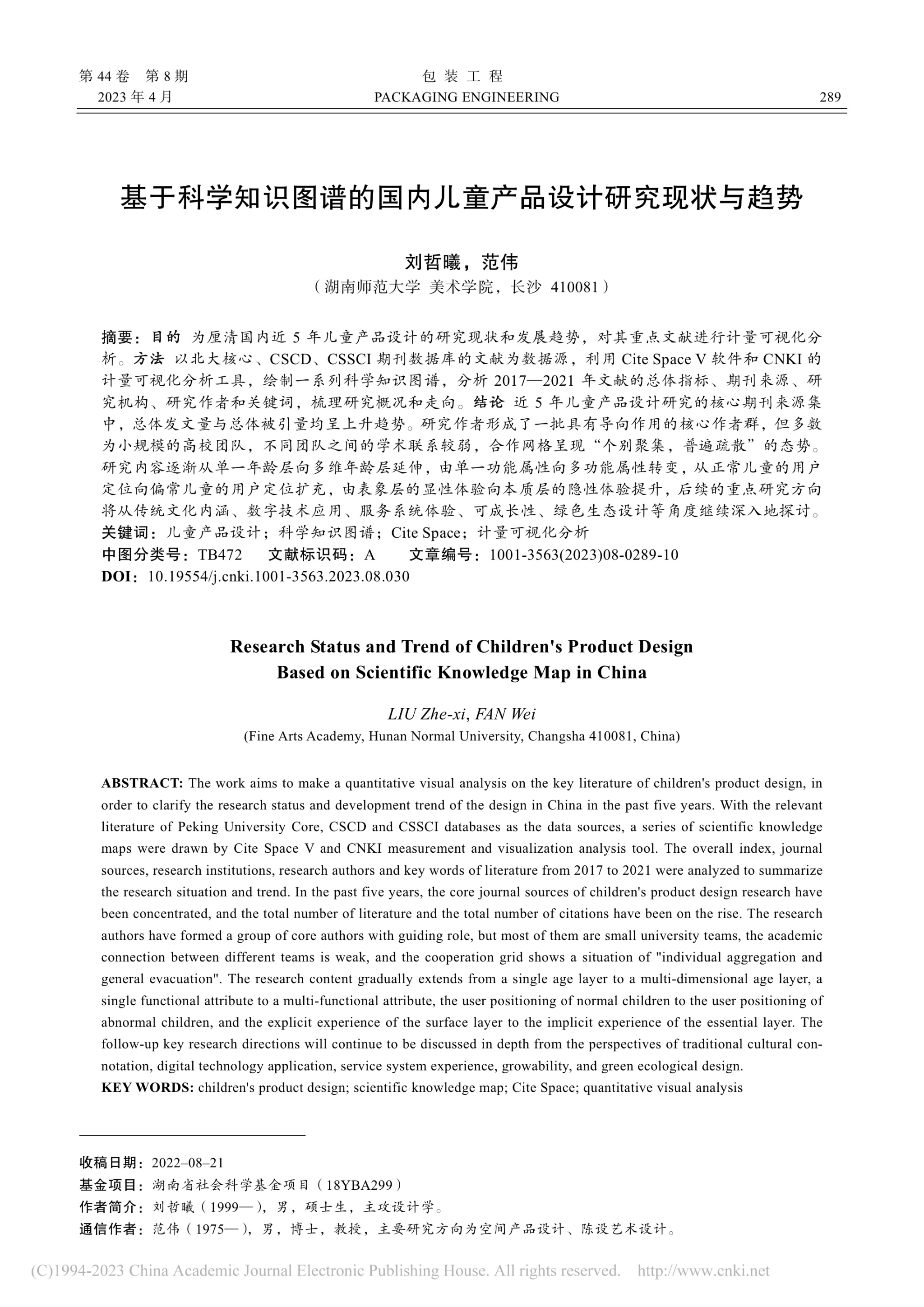 基于科学知识图谱的国内儿童产品设计研究现状与趋势