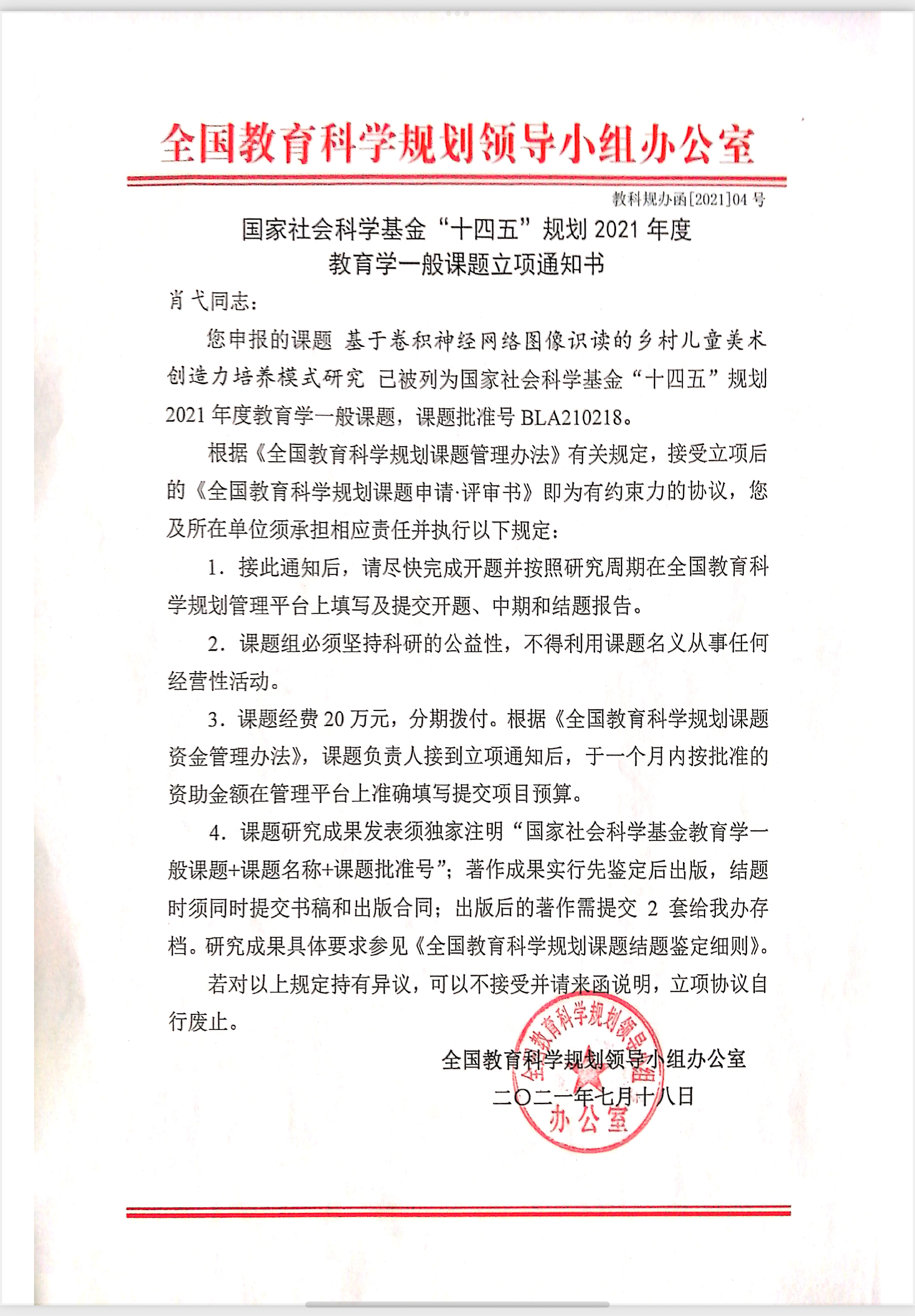 国家社会科学基金“十四五”规划2021年度教育学一般课题立项