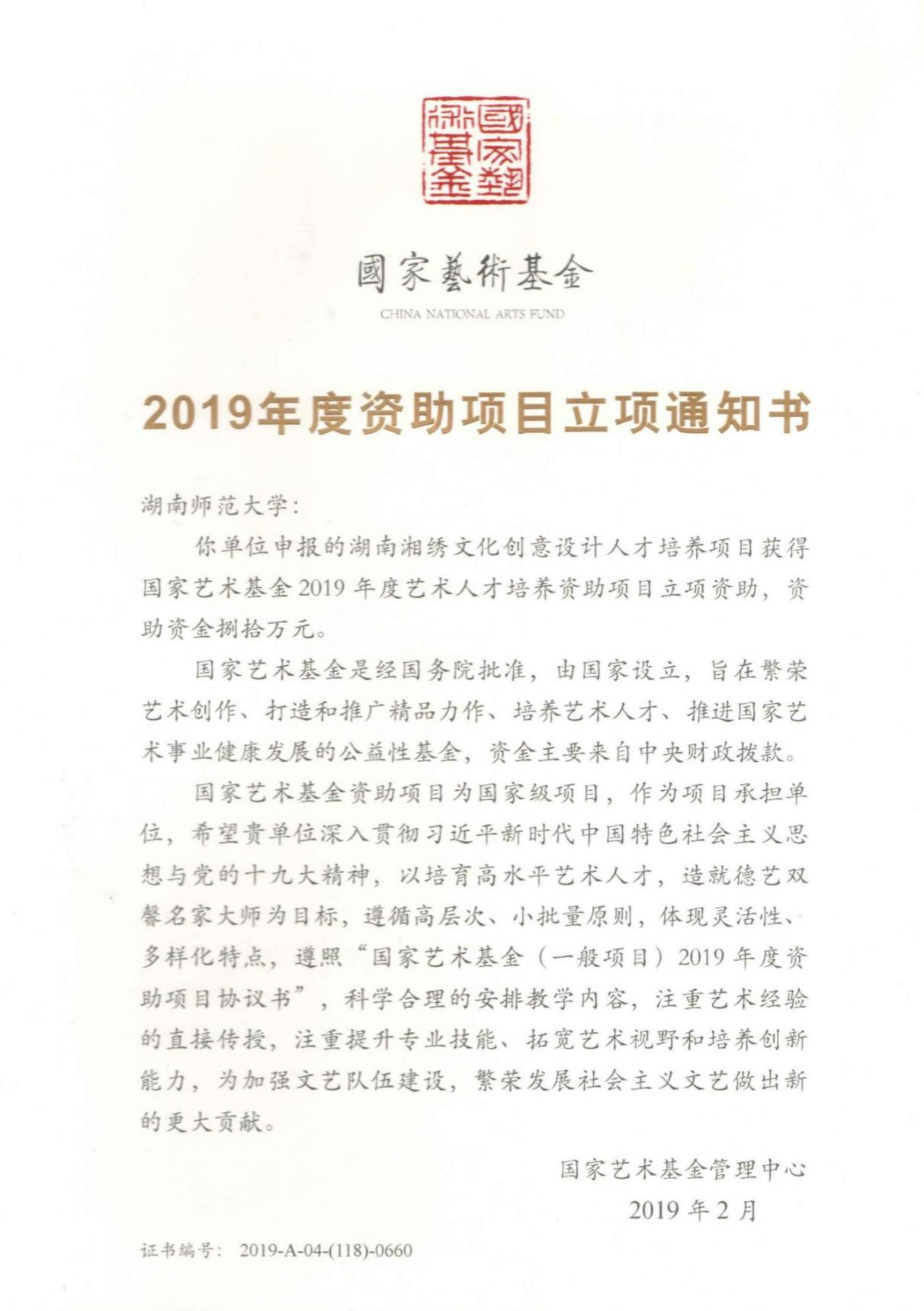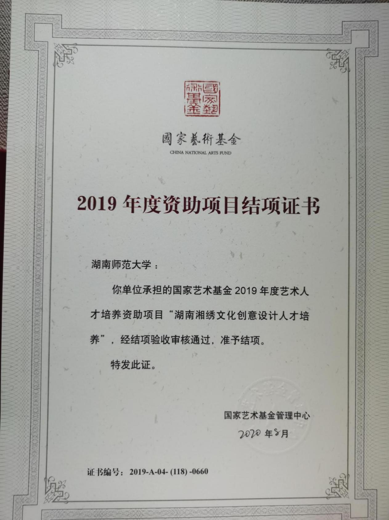 国家艺术基金艺术人才培养资助项目“湖南湘绣文化创意设计人才培养”