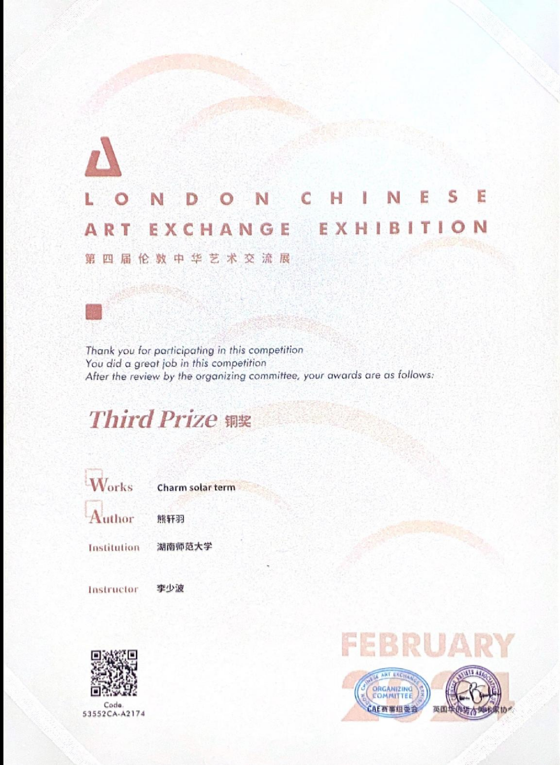 2024年第四届伦敦中华艺术交流展国际三等奖