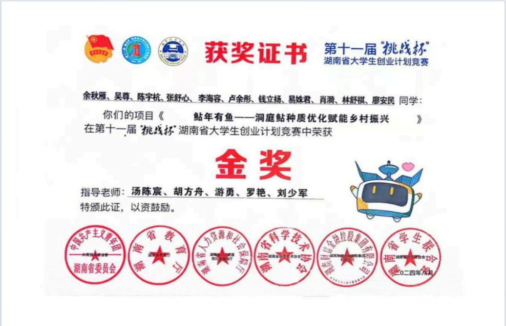 2024年第十一届“挑战杯”湖南省大学生创业计划竞赛省级金奖