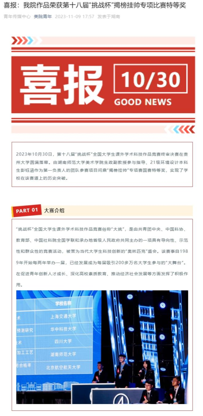 相关链接:喜报:我院作品荣获第十八届“挑战杯”揭榜挂帅专项比赛特等奖 (qq.com)